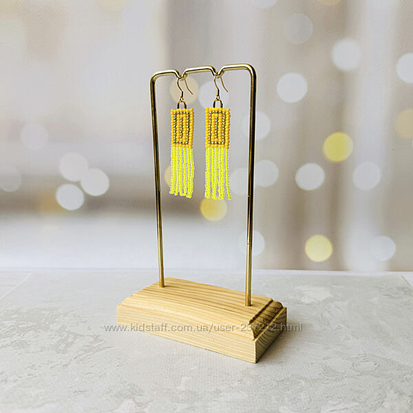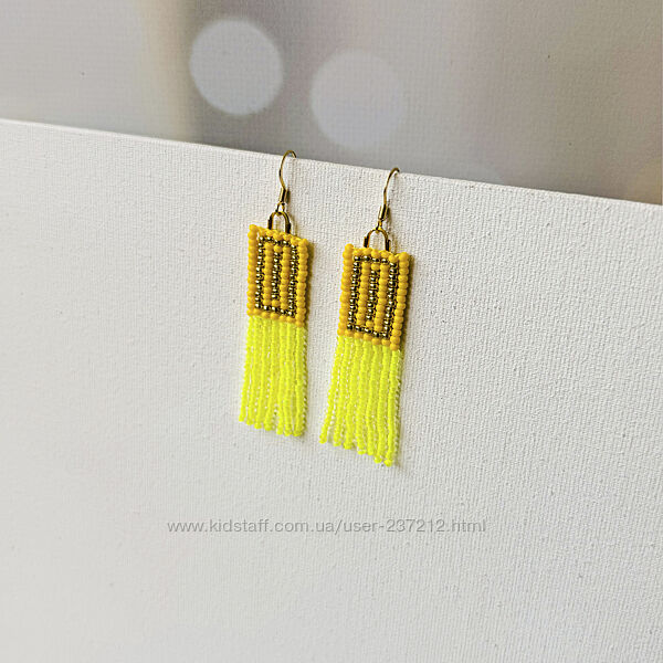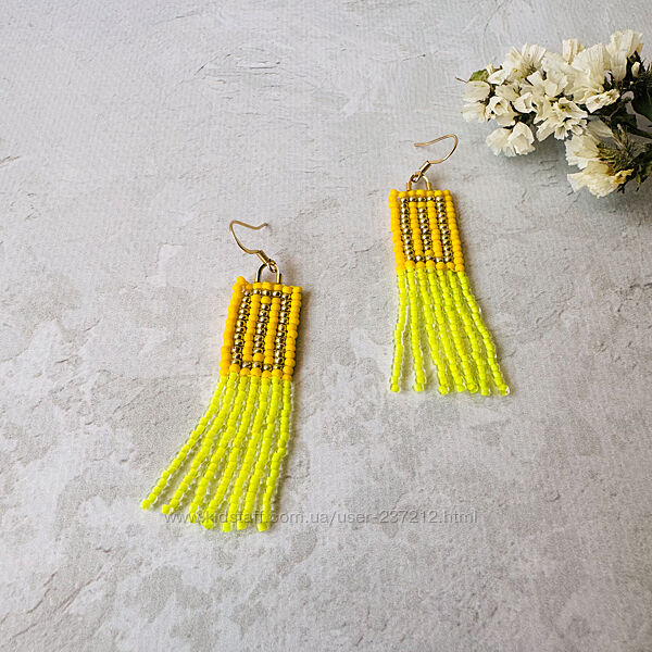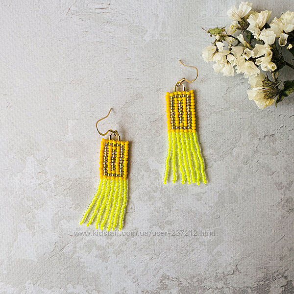 Подробное описание: Яркие желтые серьги из бисера, неоновые бисерные серьги