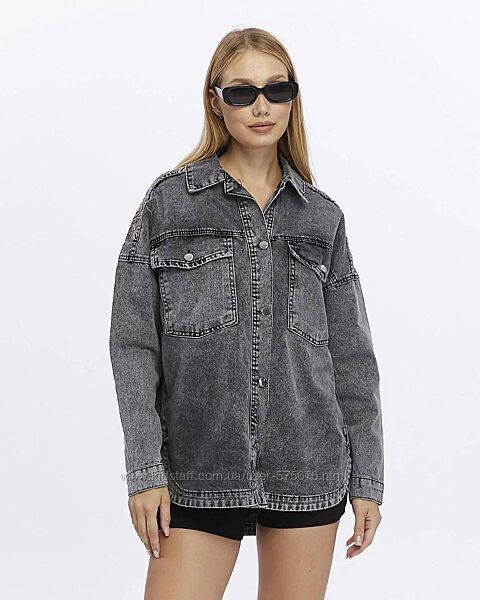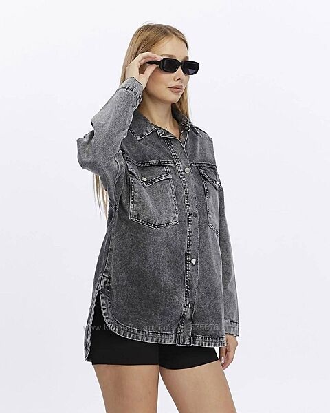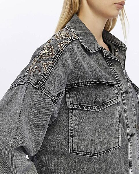 Джинсова куртка-сорочка з вишивкоюКольор сірий джинс