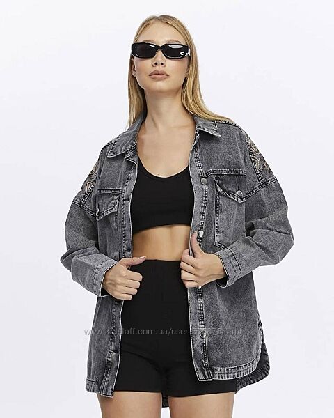 S M L Джинсова куртка-сорочка з вишивкою
