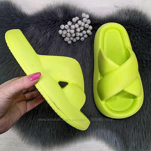 Универсальные пенковые шлепанцы - сланцы на высокой объемной подошве. Изготовлены из легкого мягкого материала EVAВысота подошвы 3-4 смПодойдут на ногу не широкую, средней стандартной полнотыЛегко моются, ноги не потеют и не натираютДля выбора своего размера, смотрите размерную сетку на данную модель:36р - 22 см