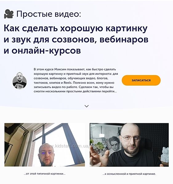 В этом курсе Максим показывает, как быстро сделать хорошую картинку и приятный звук для интернета: для созвонов, вебинаров, обучающих видео, блогов, тиктоков, клипов и Reels. Полезно всем, кому нужно записывать видео по работе. Сделаем так, чтобы вы смогли несколькими простыми действиями перейти от типичной картинки к осмысленной и приятной картинке.