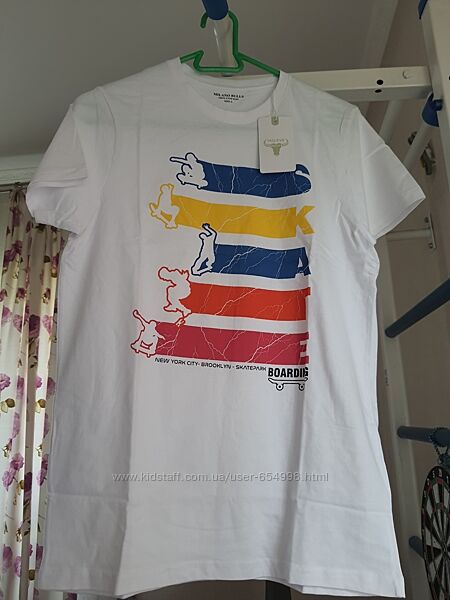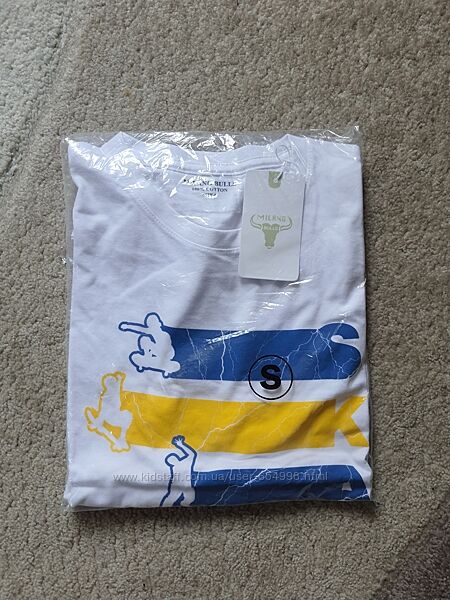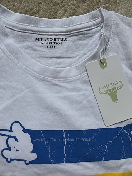 Продам нову білу футболку з яскравим принтом (накат) фірми MILANO BULLS (Італія).Розмір S.