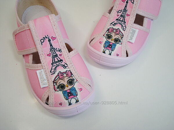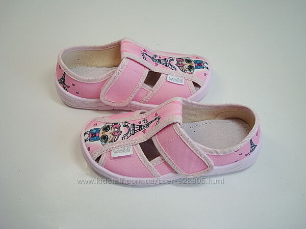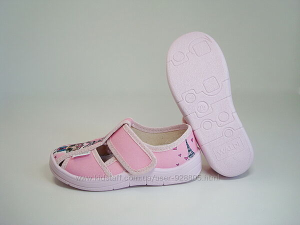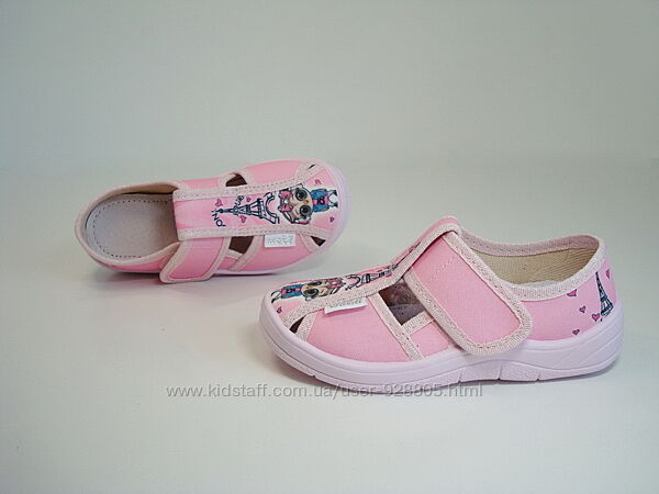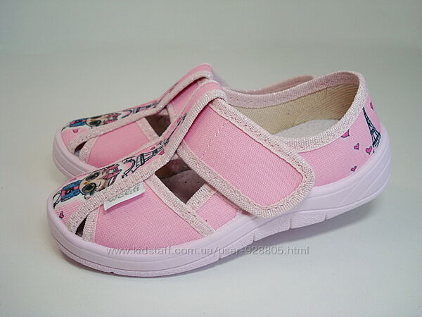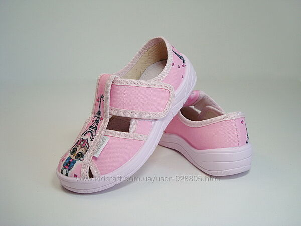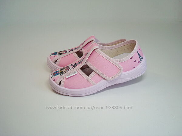 Гарні рожеві тапочки для модних дівчаток ТМ «Waldi» (Україна). Модель оригінально доповнює малюнок: сова і ейфелева вежа.