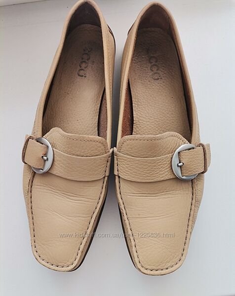 Женские демисезонные мокасины оригинал ECCO в идеальном состоянии! Удобная модель бежевого цвета из натуральной мягкой качественной кожи. Стелька с брендовой надписью. Металлическая пряжка. Размер указан 39 (стелька от края до края -26.5 см) --- Доставка : Новая Почта Предоплата 100% Без торга ,обмена ,возврата.