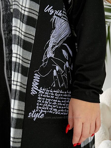 3 Ткань: клетка катон на байке , отделка чёрный трикотаж.