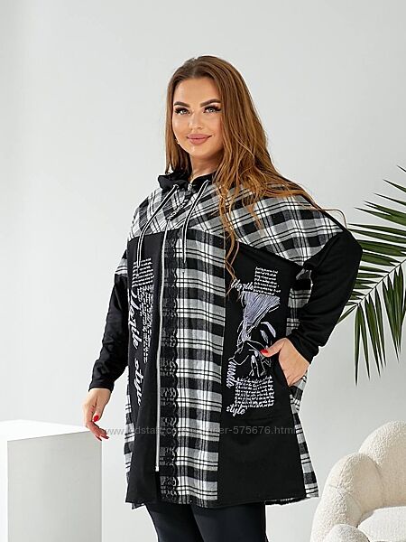 Подробное описание: р.52 до 70р. сорочка рубашка клітка катон на байці
