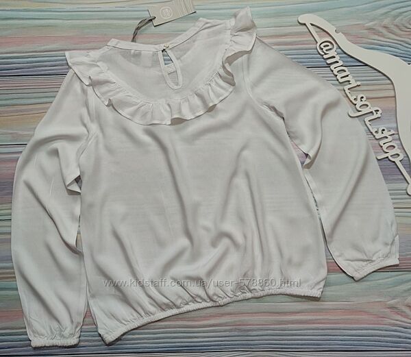 Уцінка! Біла ошатна блуза з рюшами від Cool Club у розмірі 158 (с18).Ошатна та легка блуза з застібкою сзаду. Гумка на рукавчиках та по низу. Є плямка на рукавчику (фото 5).