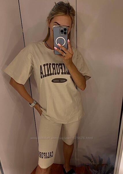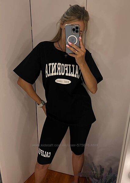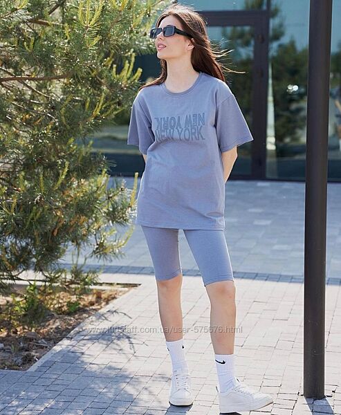 Комплект з велосипедками - незамінна річ в твоєму гардеробі !Футболка типу оверсайз та зручні велосипедки незамінна база