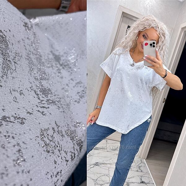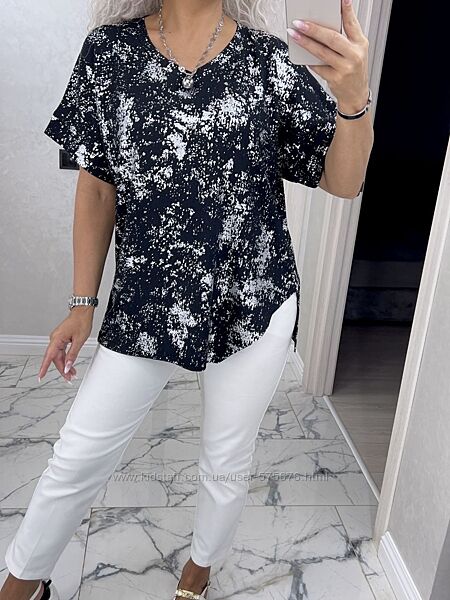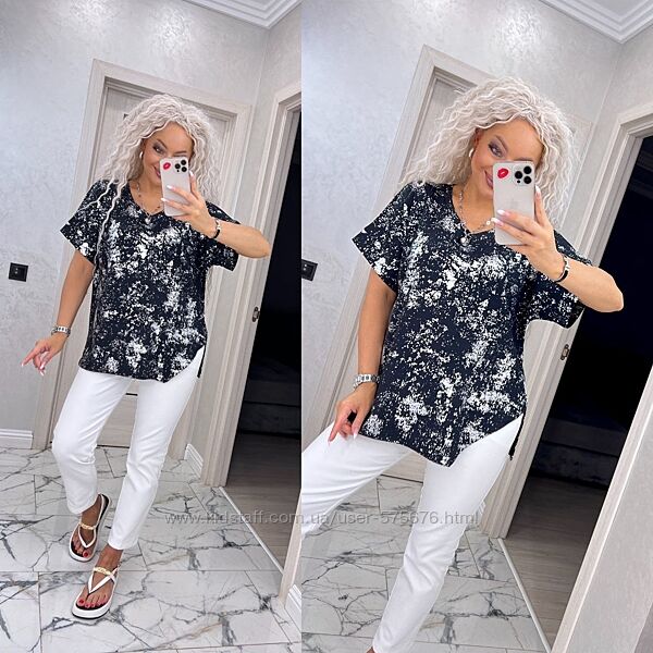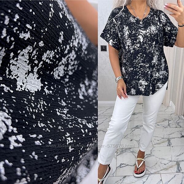 Подробное описание: 48-52, 54-58, 60-64 Футболка віскозна жатка з напиленням Туреччина