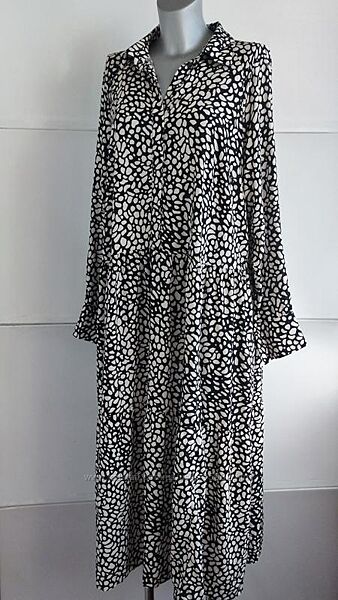 Сукня міді H&M із натуральної тканини з анімал принтом з 100% віскози. Сукня з довгими рукавами з манжетами , спереду до талії планка з потайною застібкою на гудзики . Не просвічується, такі речи гарні у любу пору року.РОЗМІР м, сяде і на л,