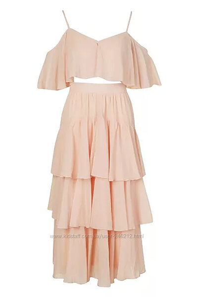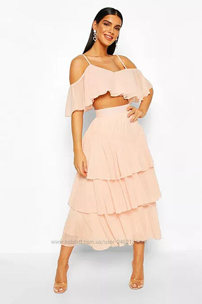 Абрикосовий повітряний костюм топ+спідниця від Boohoo з Англії.Ніжний привабливий, не залишить нікого байдужим.