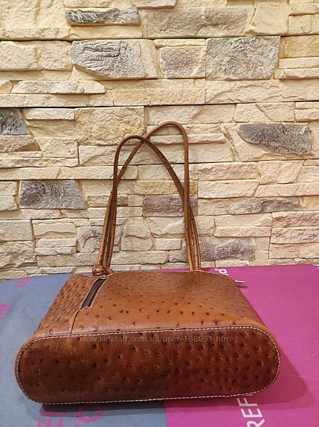Сумка-рюкзак , із натуральної страусиної шкіри , тримає форму,два відділення,розділені третім на блискавці,стан ідеалний , без дефектів ,розмір Довжина 32 см, висота 27 см,ширина дна 8см, довжина ручок 74 см.