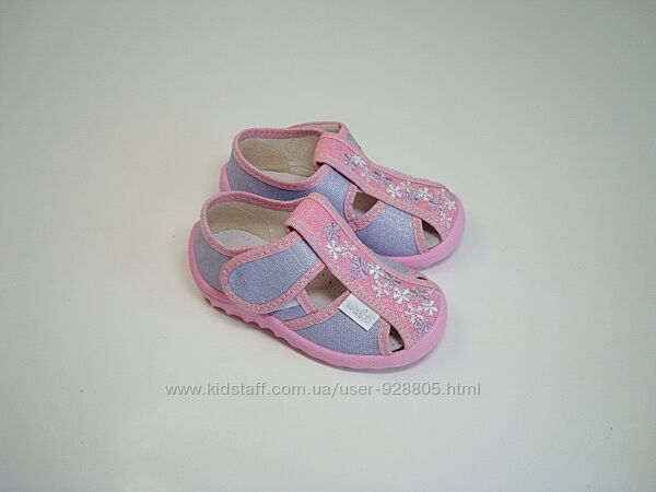 Тапочки ТМ «Waldi» – це якісне взуття, яке можна носити завжди і скрізь, під час прогулянок на вулиці, як змінне взуття вдома та дитячий садок. Модель оригінально доповнює вишивка з квіточок на носочках. Колір комбінований ліловий і рожевий.