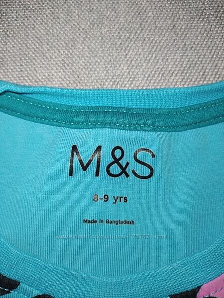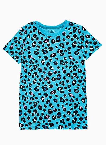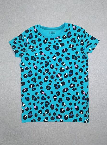 Натуральна блакитна футболка в леопардовому принті від m&s на 8-9 років