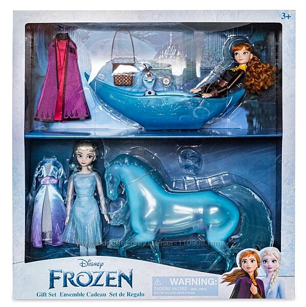 Классический набор кукол Disney Frozen 2 .В наборе: кукла Эльза, кукла Анна, конь Нокк, снеговик Олаф, саламандра Бруни, два дополнительных наряда и аксессуары.