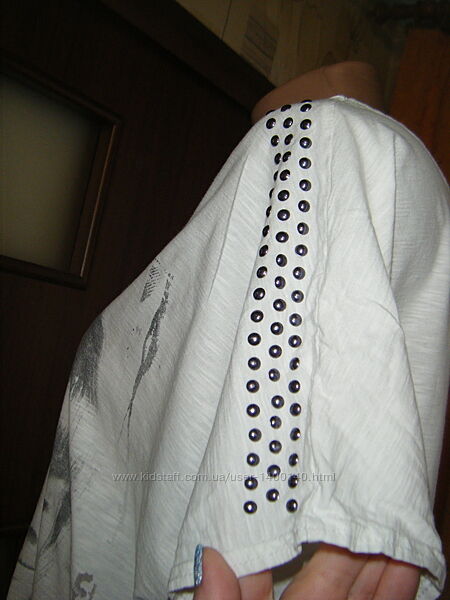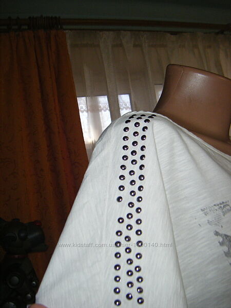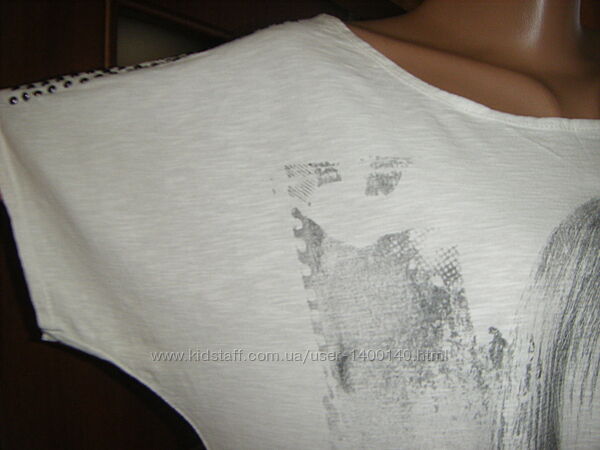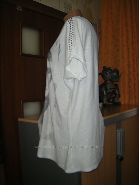 Подробное описание: Трикотажная белая футболка с принтом и термоаппликацией, размер ХL - 20 - 5