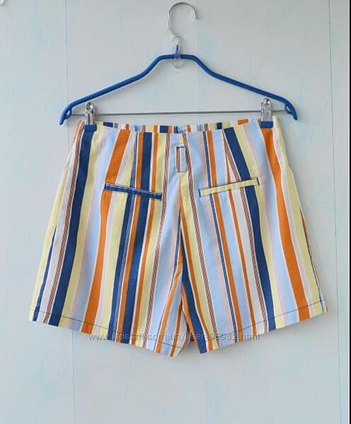 Легкі шорти в смужку, висока посадка Asos пошиті зі 100% бавовни. Приємна до тіла тканина, висока посадка, є петельки, можна носити зпояском. застібається на ґудзики та змійку. На бирці розмір 8.