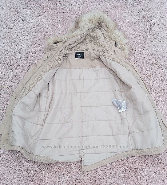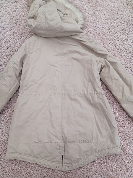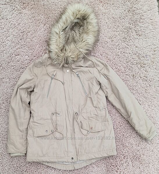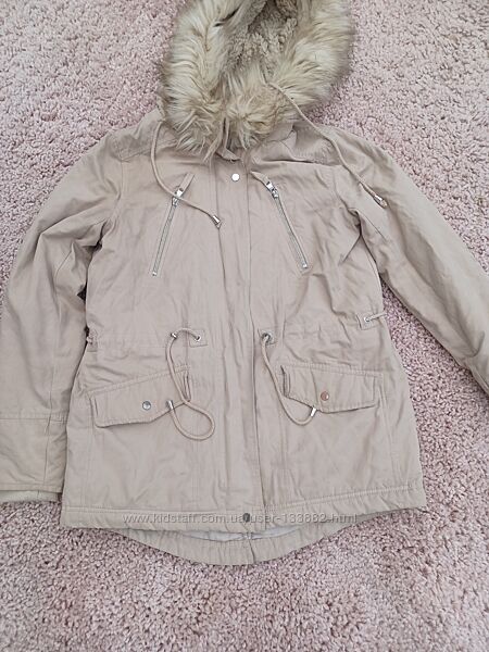 Чудовий стан. Оригінал. Сток. Мех знімається. На рукавах манжети. Талія затягується52% поліестер, 38% котон, 10% поліамід. Наповнення поліестр.Довжина перід- 63см. довжина зад- 73см. ПОГ- 52см. рукав- 61см. рукав від шиї- 70см