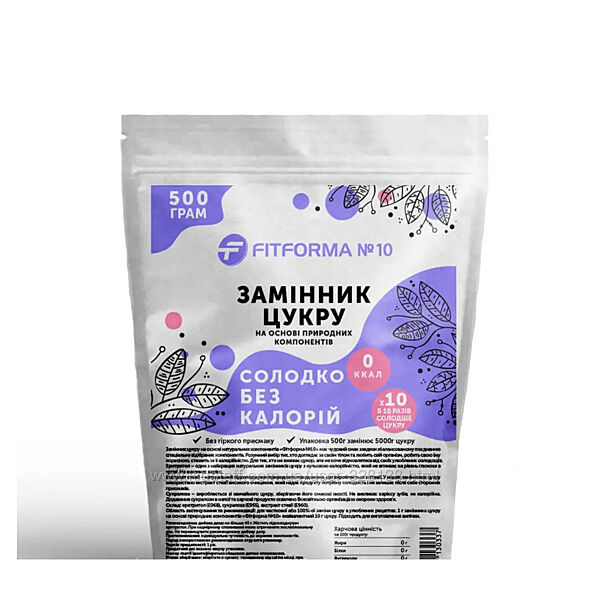 Цукрозамінник “Фітформа №10” – це суміш підсолоджувачів з мінімальним вмістом калорій, що складається з інгредієнтів рослинного походження, без проблем засвоюється організмом і рекомендована людям, які стежать за своєю вагою та діабетиками.