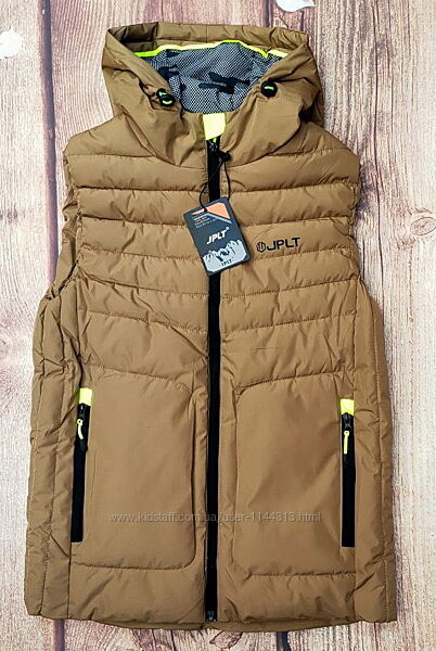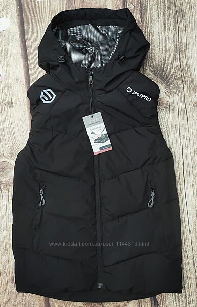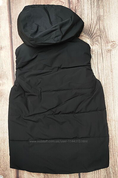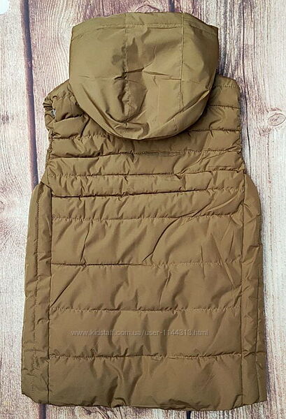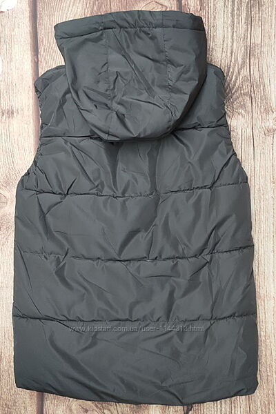 Демісезонна жилетка на хлопчика від 146 до 170 зросту. Застібка на блискавку, дві кишені спереду. Капюшон суцільний, не відстібається. На капюшоні є вітрозахисна утяжка.Виробник: фабричний Китай.