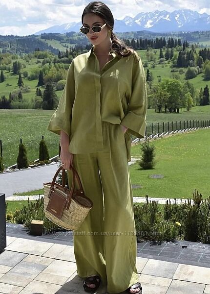 Сорочка вільного крою. Штани на широкій резинці, є кишені.