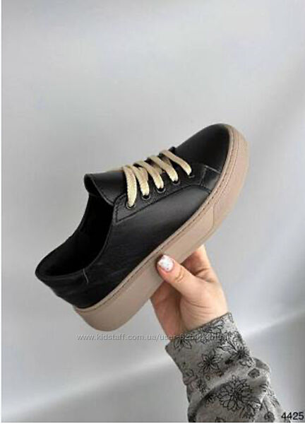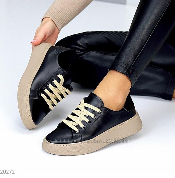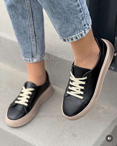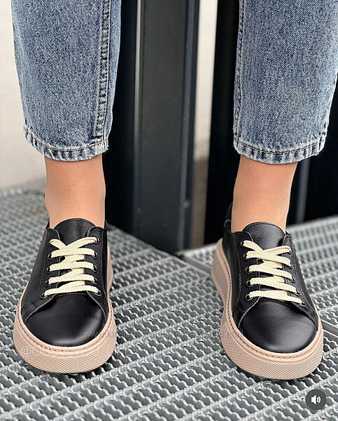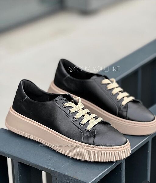 Подробное описание: Жіночі кросівки з натуральноі шкіри чорного кольору на бежевій підошві