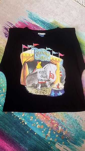 Футболка Zara с подплечниками и принтом "dambo" размер L в идеалеКрутой трендовый крой и отличное качество!
