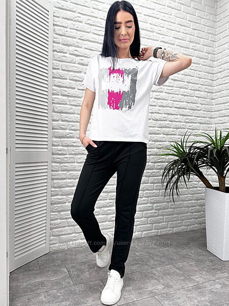 Колір: чорний Розмір: 42-44Матеріал: футболка- турецький кулір, штани - двунитка