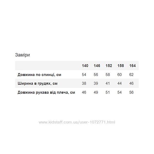 | Рост | 140 см, 146 см, 152 см, 158 см, 164 см |