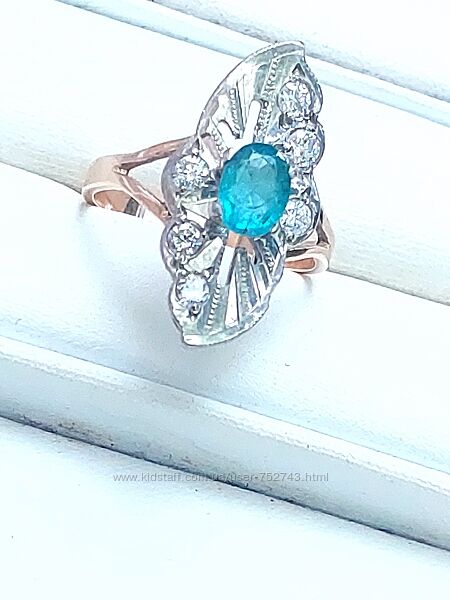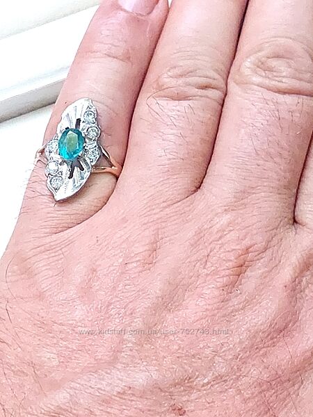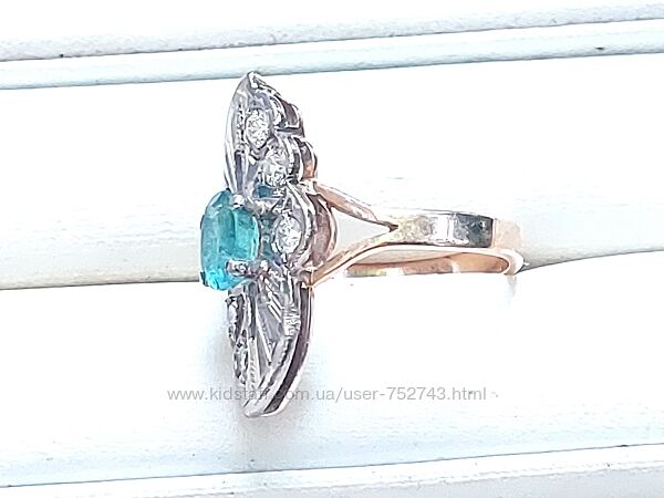 Золотое кольцо 583 пробы с бриллиантами 0.5кт. и изумрудом 1кт.