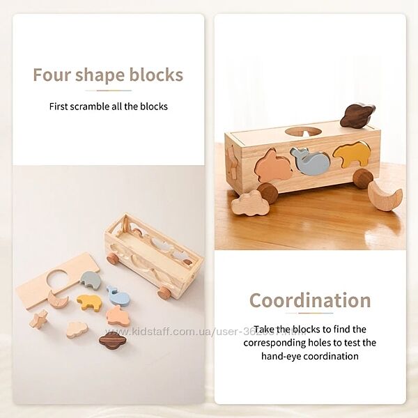 🔹 Подорож у світ навчання – Дерев´яний візочок-сортер стане першим кроком до знайомства з формами та кольорами, розвитку моторики та тактильного сприйняття вашого малюка. Це більше, ніж просто іграшка – це захопливий шлях навчання для маленьких дослідників!