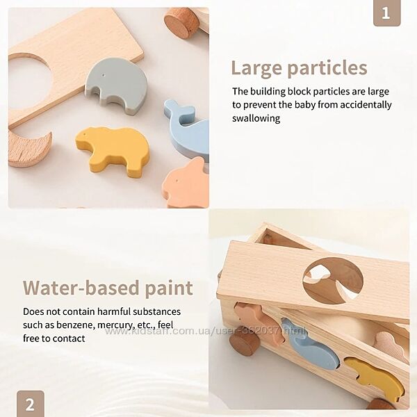 🔹 Безпека та екологічність – виготовлений із натуральної деревини, покритий безпечною фарбою без BPA, із закругленими краями та гладкою полірованою поверхнею. Цей сортер – вибір, якому можна довіряти, адже він повністю безпечний для дітей!