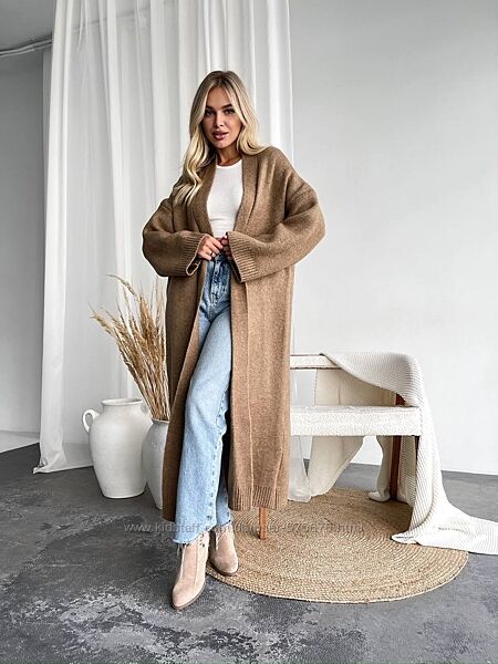 Подовжений кардиган, виконаний з м´якої пухнастої пряжі. Кардіган ідеально підійде на прохолодну погоду.• Розмір універсальний