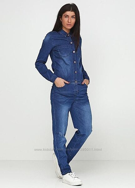 Комбінезон із легкого деніма німецької марки Esmara ПОГ 45 см пояс ПО 42 см ПОБ 50 см рукав 62 см + 11 см плече штани по внутрішній стороні 75 см, по зовнішній з поясом 103 см від ворота до пояса 54 см Загальна довжина 155 см В об´ємах тканина тягнеться Підійде на зріст вище 165 см