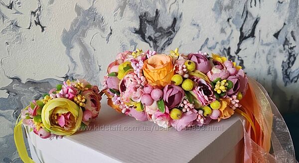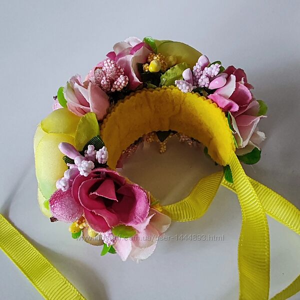 Гарне доповнення до образу з квітковим віночком. Браслет під вишиванку з жовтими, рожевими візерунками. Підійде на свято, фотосесію, ранник. Також в наявності є віночок з такими квітами. Вартість віночка 750грн. Основа фетр. На зап´ясті буде триматися за допомогою стрічок. Підійде для дівчаток з 5 років і дорослим. Матеріали - Якісні штучні квіти з тканини - Калина, листя - тканина , пластик - Стрічки репс Більше фото та відеогляд в моєму інстаграмі gerbera_sunshine Відправка в день оплати, якщо оплата здійснена до 18:00 і працює відділення Нової Пошти. Якщо оплата пізніше 18:00, відправка наступного дня - зранку. Відправляю Новою Поштою. Можлива доставка експрес відправленням укрпоштою (в субботу) Повернення немає. Без накладеного платежу. Робіть покупки усвідомлено.