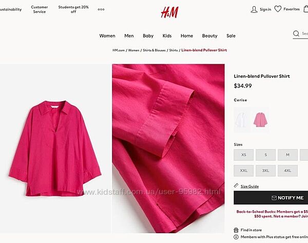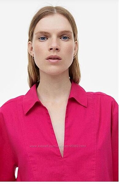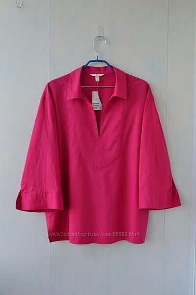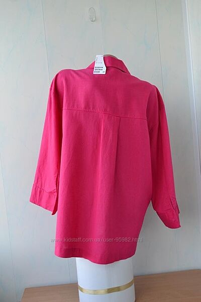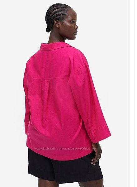 Лляна блуза вільного крою H&M, чудовий склад: 52% льон, 48% бавовна. На бирці розмір л, сяде і на більший, орієнтуйтеся за замірами.Реальний колір на промофото.