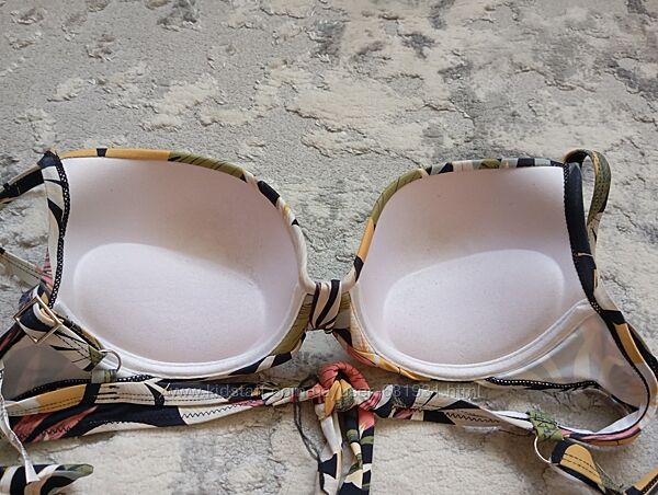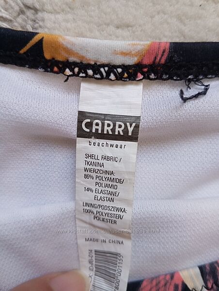 купальник Carry, p . L. Чашка на объем груди С, за счет наполнителя в лифчике и костей грудь выгляд соблазнительно Лифчик не деформирован, отлично лержит грудь. На бретельках есть утяжки для регулирования высоты.Трусы за счет завязок по бокам можно на бедра 92-100 см.