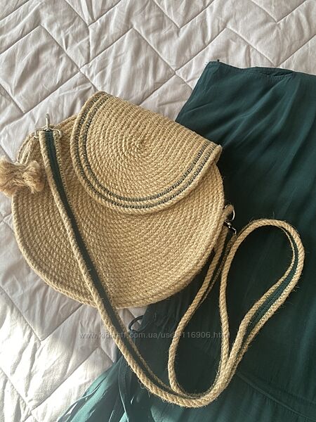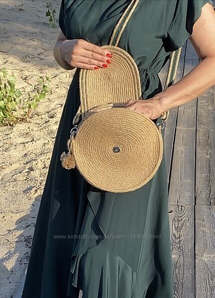 Сумка із джута жіноча з підкладкою і карманом для телефону