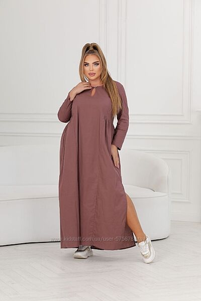 Подробное описание: 46-48, 50-52, 54-56, 58-60 Розкішна жіноча сукня вільного крою з розрізами