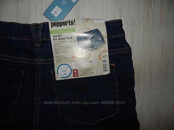 Джинсові шорти від бренду Peperts. Приємний комфорт при носінні завдяки високому вмісту бавовни. Із 5 кишенями. Модний ефект потертості. Внутрішня гумка для налаштування пояса. Застібка на блискавку та гудзик. Якісна фірмова блискавка YKK. Оптимальна посадка завдяки еластану LYCRA®.РОЗМІР158