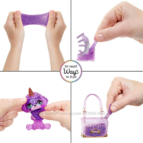 -Смешайте слайм с блестящим шимером, и поместите его внутрь сумки, каблуков (которые снимаются с обуви) или любимца.