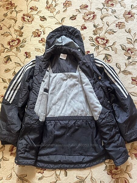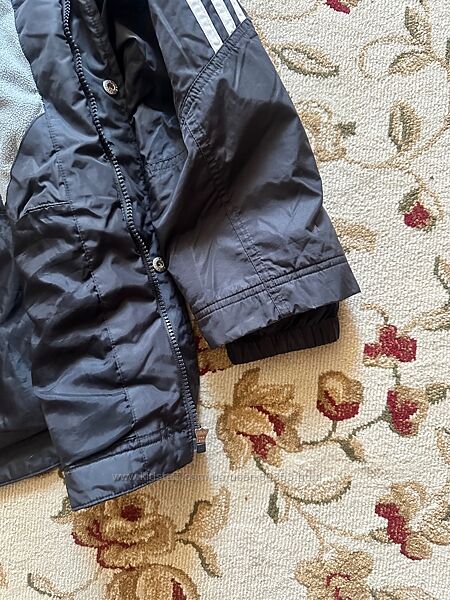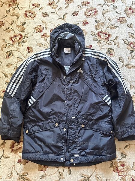 Куртка демисезонная Adidas. Размер 152 (12-13 лет). Цвет темно-серый. Очень комфортная куртка, с капюшоном, 4 кармана сверху и один внутренний карман. Есть защита от задувания ветра, регулируется кулиской. На рукавах внизу дополнительная защита на резинке от ветра и холода. Съемный капюшон, который также можно спрятать в воротник на молнии. Состояние отличное! Замеры: длина от плеча по спинке - 67-68 см, ПОГ - 52 с, ширина куртки внизу 50 см, длина рукава от шеи - 68 см. ID: 854599992