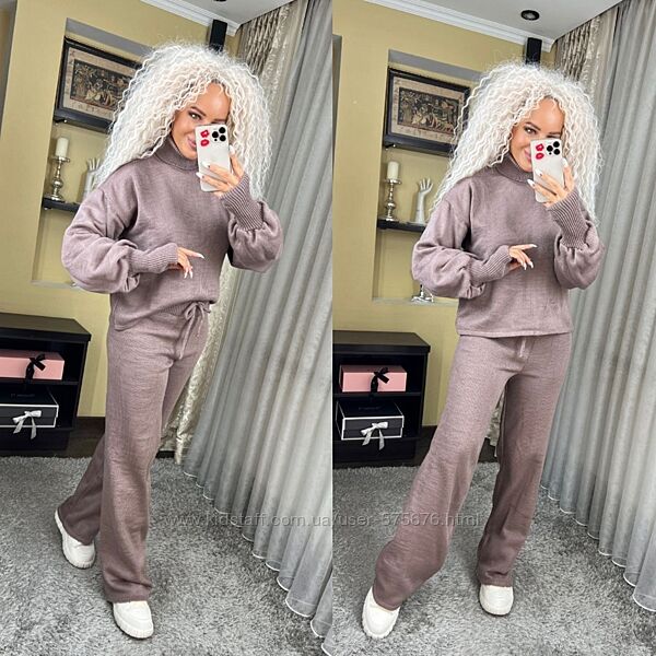 Класнючий в´язаний костюм з об´ємними рукавами та прямими штанами.