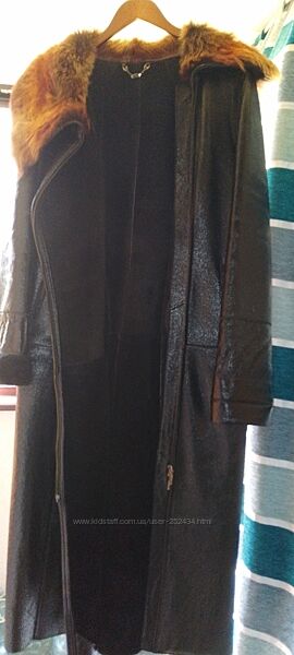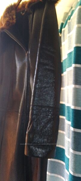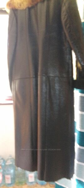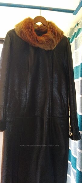 Продається дубленка, стан ідеальний. Верх - натуральна шкіра, всередині - хутро, середньої товщини, на євро зиму, до -10. Колір чорний, має блиск. З пропиткою. Хутро на комірі натуральне, але вже не пам´ятаю яке, стан ідеальний. Блискавка спереду з лівої сторони. Купляла в Турції. Вже мала за розміром, просто висить в шкафу. Мої параметри: 106-90-106 (52 розмір український), на светр можу застібнути, але тісно вже. Добре сяде на розмір не більше 50. А на 48 розмір український буде ідеально. Вказую заміри по верху виробу (не розмір тіла): ПОГ - 56 см; ПОТ - 53 см; Плечі - 47 см; Довжина рукава - 72 см (повна, можна підвернути); Довжина - 126, 5 см.