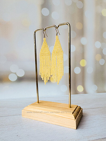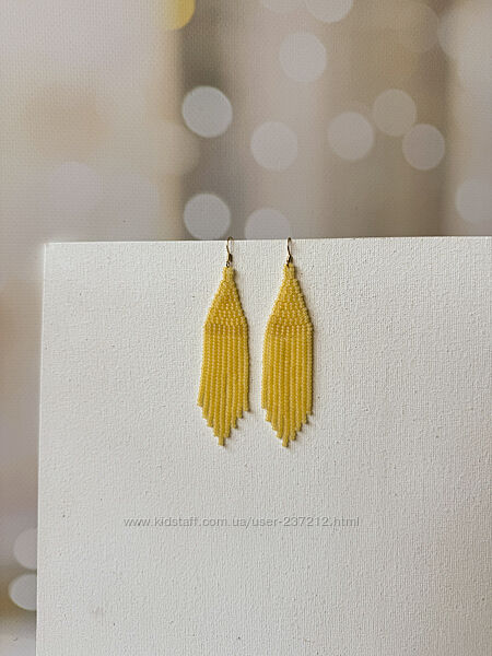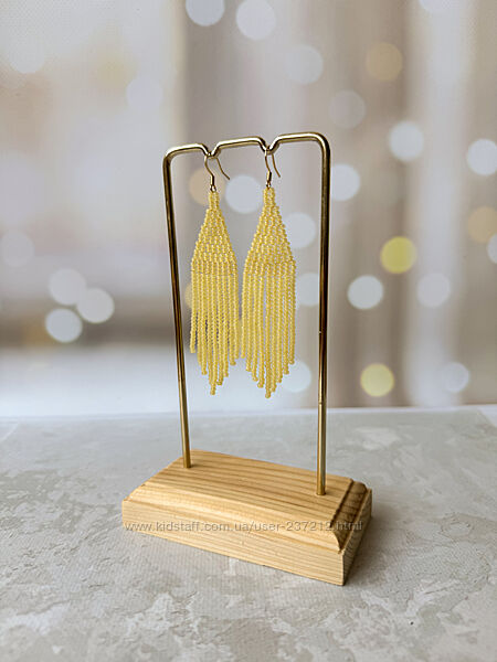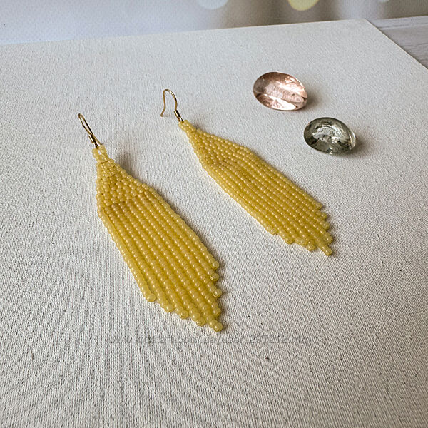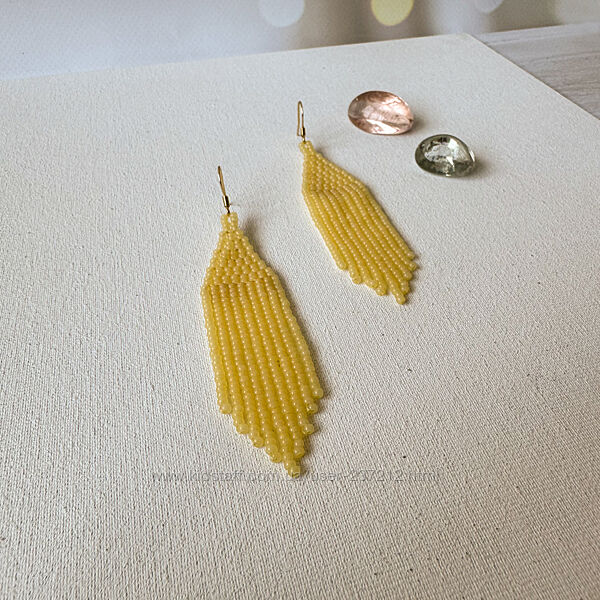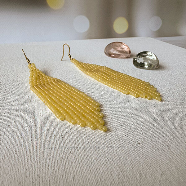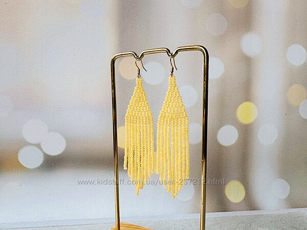 Довгі бісерні сережки у ніжному жовтому кольорі.Довжина сережок: 9,5 см