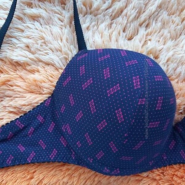 Хлопковый базовый бюстгалтер, размер 70С, состав на фото, новый, с биркой.Цвет темно-синий в мелкий горошек.