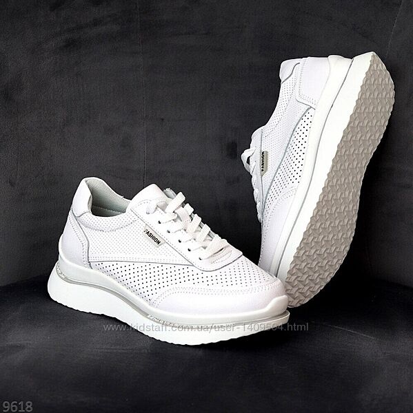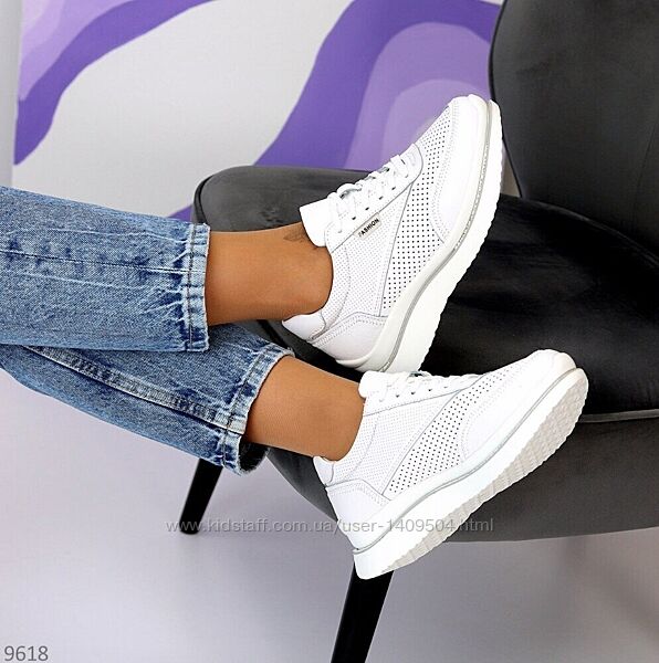 Натуральні шкіряні білі кросівки на товстій підошві. Зашнуровуються, перфорований верхній шар шкіри, підкладка всередині текстильна (сіточка), легкі та зручні. Стильна підошва та дизайн. Сучасне взуття за доступною інтернет-ціною та без посередників.