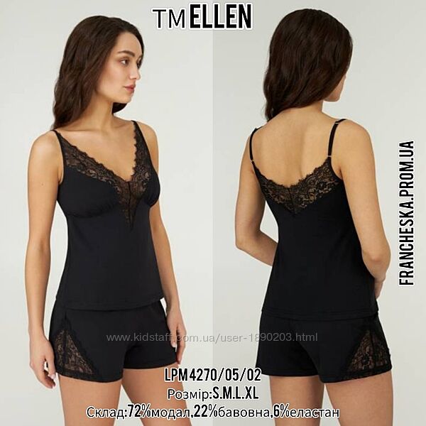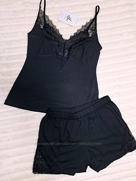 Подробное описание: Чорний жіночий комплект для сну майка шорти Ellen розмір S