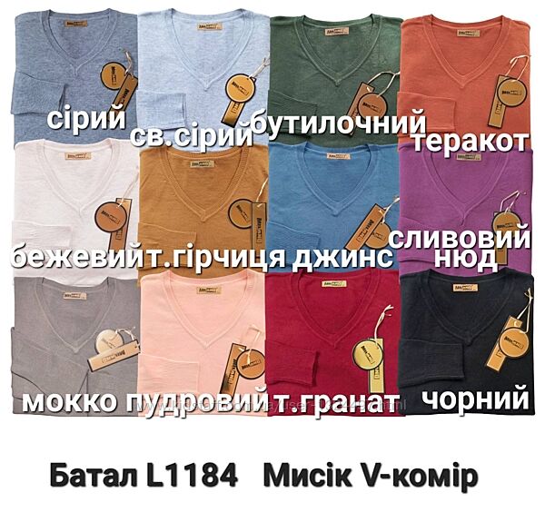 Джемпера "Мілано" Мисік(V- виріз) демі БАТАЛ код 1184 кольори в асортиметіМЛ (це 48-52)