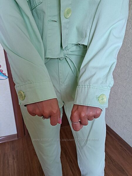 Ментолового цвета летний костюм в отличном состоянии на рост 158/164.Верх оверсайз : длина 46,ширина56,рукав 70.Низ: длина 92,талия 32,внутренний шов 64.Одет на рост 165Другие объявления продавца